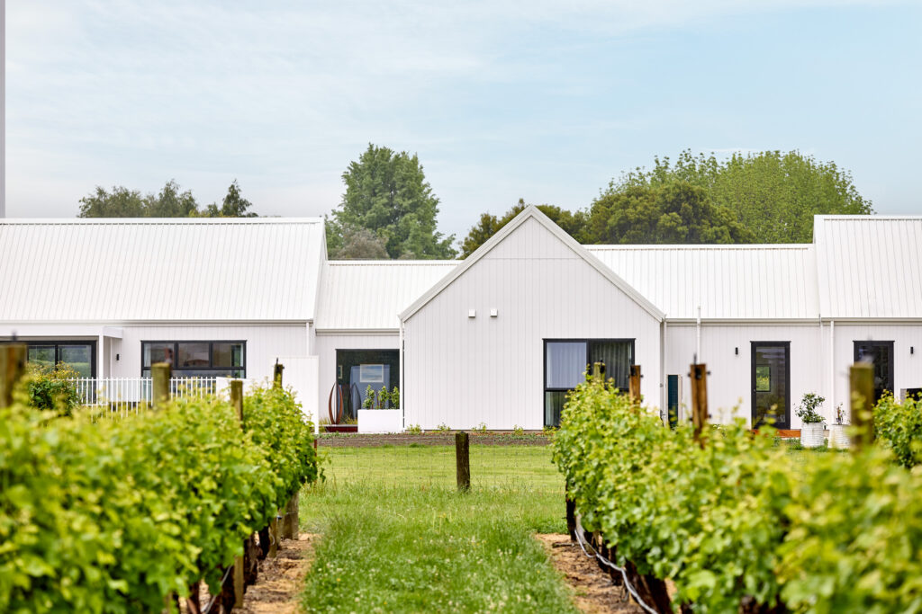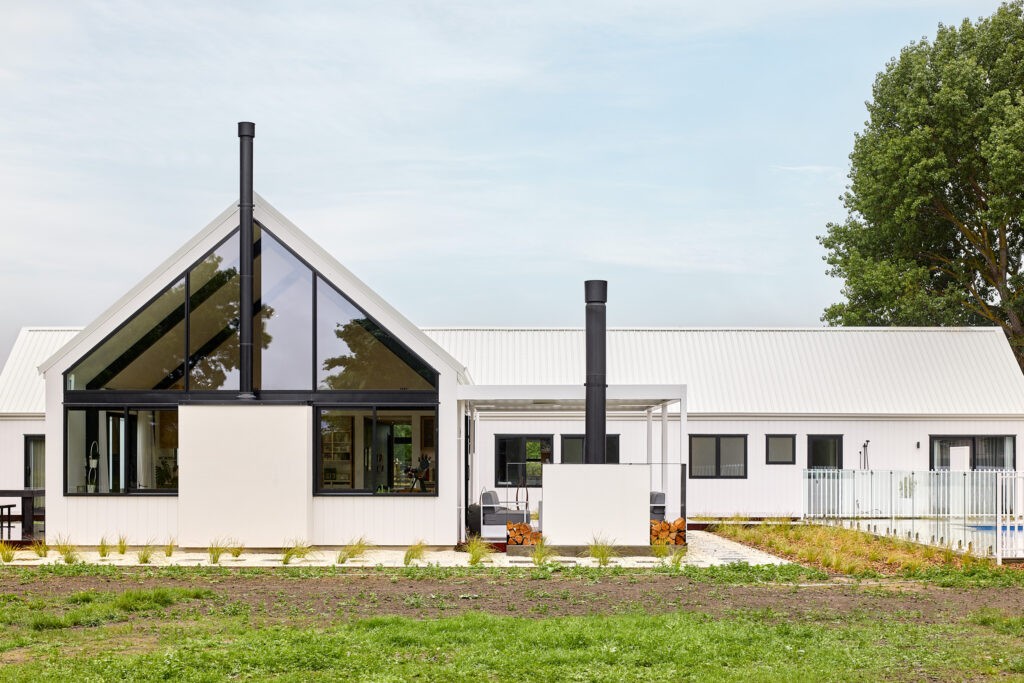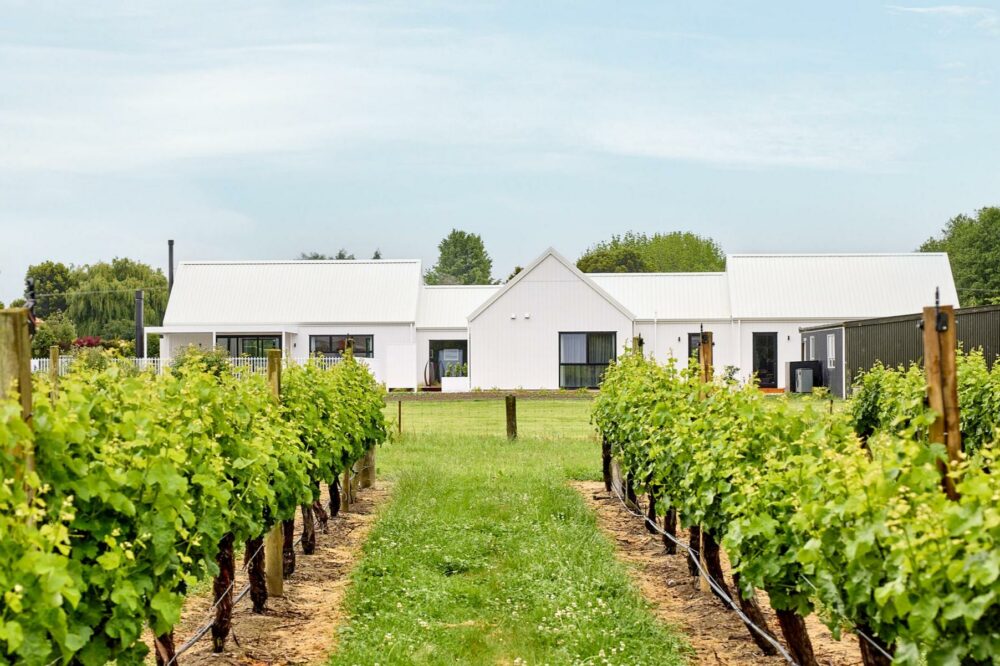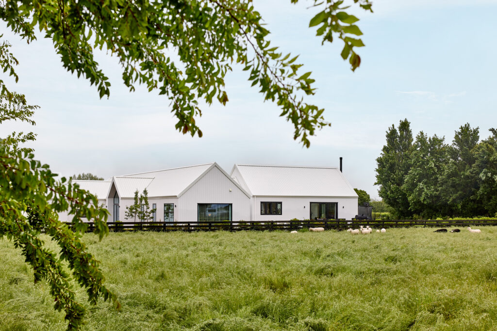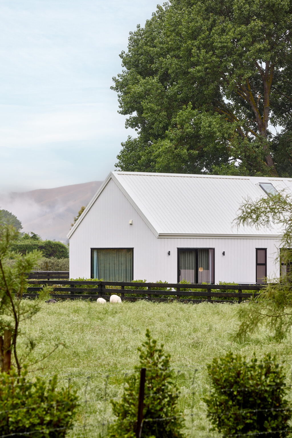 在建房这件事上,其实没有什么标准答案。在新西兰南岛Blenheim的乡间,一块可以远眺Wither Hills山丘与葡萄园的农庄上,Krista和Richard决定在这里建造一栋理想的房子。他们曾经非常确定自己想要什么——一栋深色调的现代谷仓风格住宅,与辽阔的自然形成对比,那几乎是他们心中已经定型的答案。直到与建房顾问的一次会面中,一张白色外墙板住宅的照片出现在他们面前,他们的想法就在那一刻改变了。