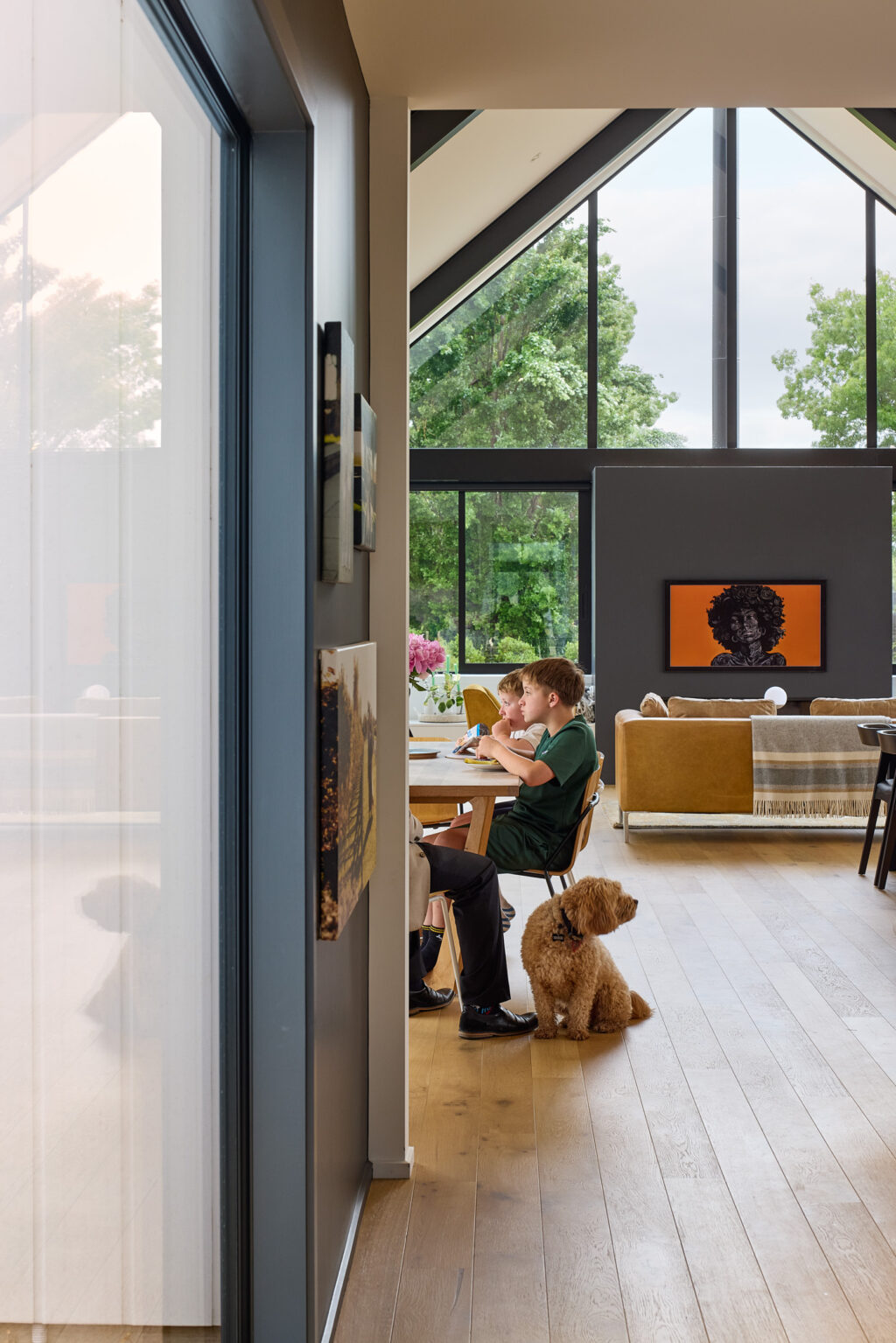 Krista和Richard与他们的两个儿子Otis和Hugo,以及他们的小狗Nugget住在自家这片农庄上,在原有的老农舍里住了整整三年。在这三年中,他们一边生活,一边观察土地的光线走向、远景变化与家庭的真实需求。